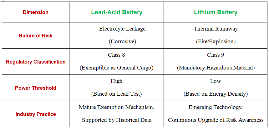 Why can lead-acid batteries be transported as ordinary goods in international logistics under superpower conditions, while lithium batteries cannot? The main reason lies in the differentiated management of the two in international logistics transportation, which stems from their chemical properties, risk levels, and differences in international regulatory classification standards. The following analysis will cover three aspects: technology, regulations, and industry practices.