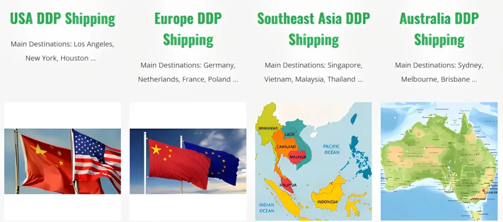 Our DDP shipping service covers major markets including the USA, Europe, Southeast Asia, the Middle East, and other regions. We provide reliable door-to-door delivery worldwide.