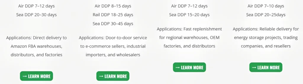 We provide Door-to-Door DDP Shipping for lithium batteries and related products, ensuring safe and compliant delivery worldwide