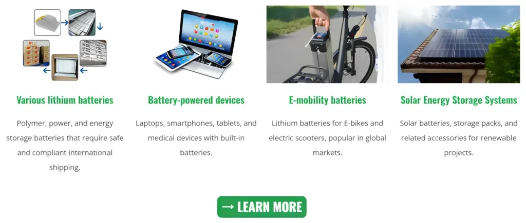 Polymer, power, and energy storage batteries that require safe and compliant international shipping.